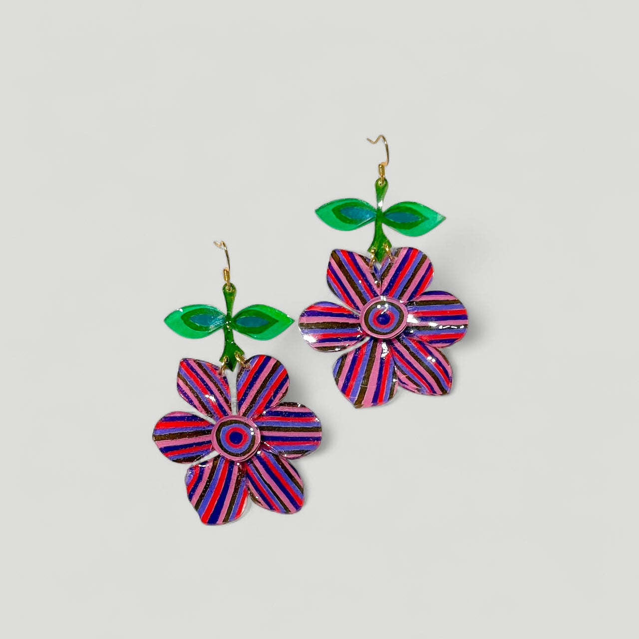 Si usas colores con efecto purpurina, seguimos pintando por la cara mate (porque es donde agarra el color), pero después los pendientes se montan al revés: la cara mate quedará vista para que se luzca la purpurina, y la brillante quedará detrás.