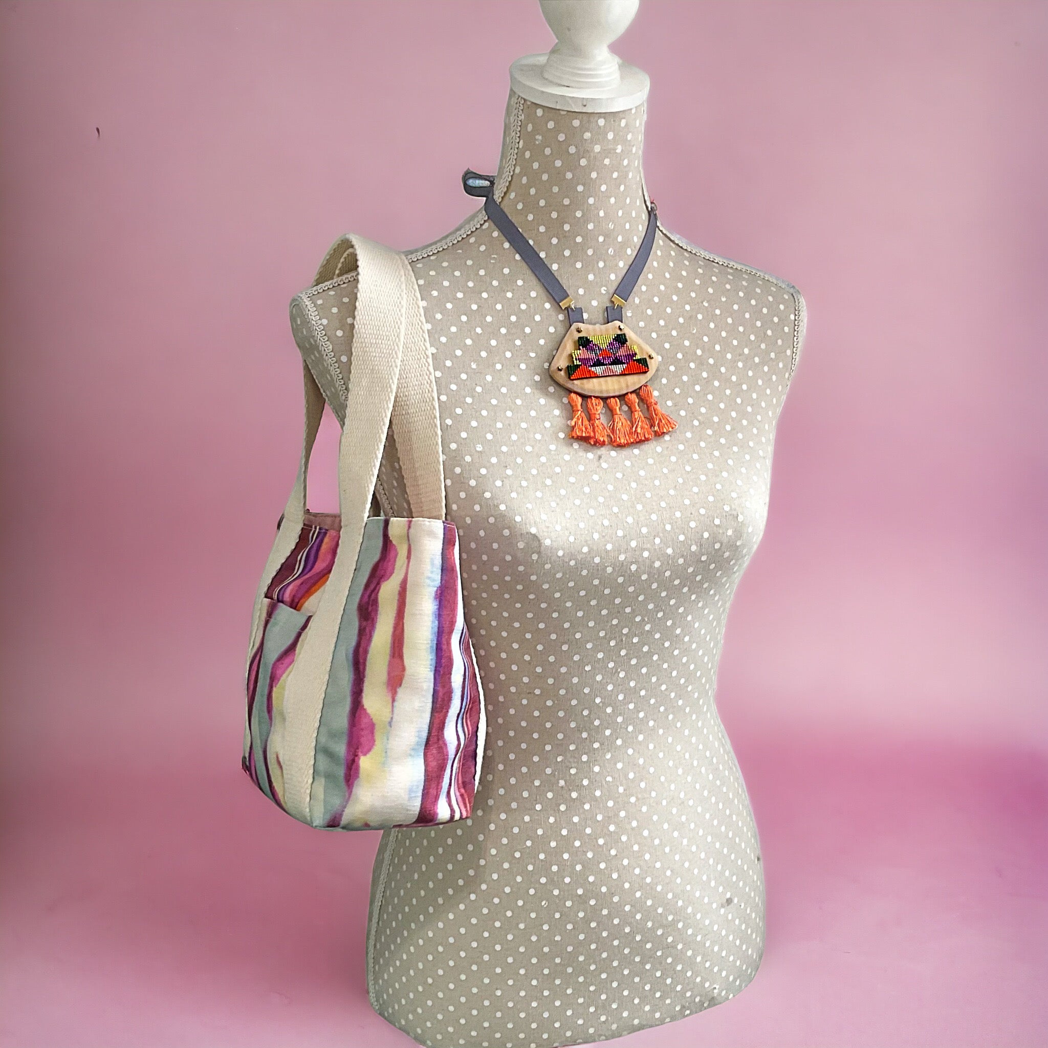 Como todo en nuestra marca, es de edición muy limitada porque las telas son de ediciones pequeñitas. Es ideal para el buen tiempo y tiene un tamaño perfecto para que quepa todo.