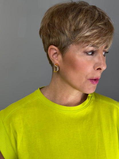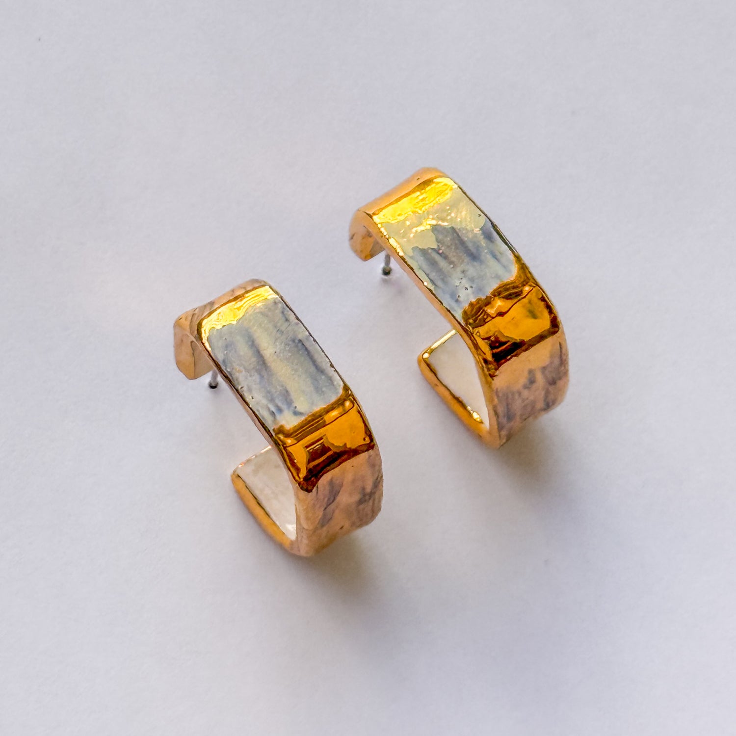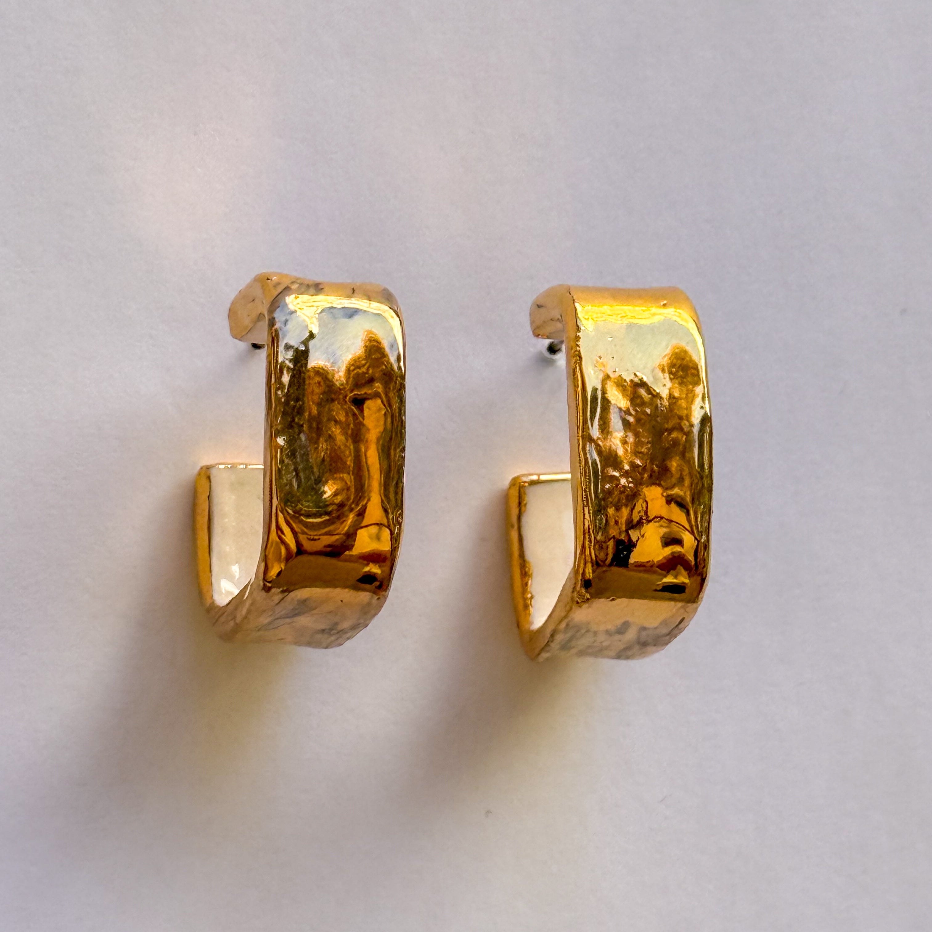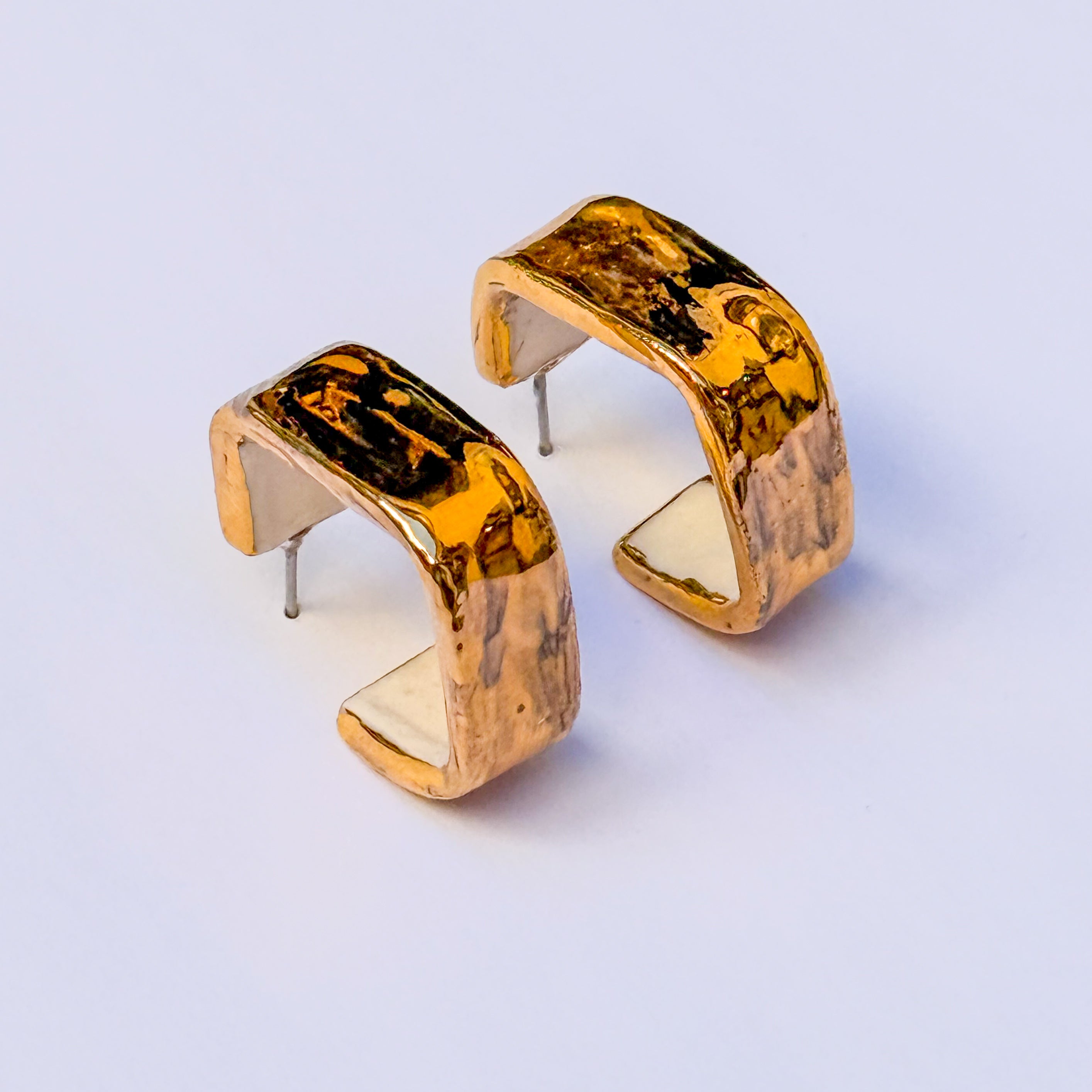 Esculpidos en cerámica y bañados en oro, estos pendientes tienen la presencia de una pieza de galería y la ligereza de un día junto al mar.