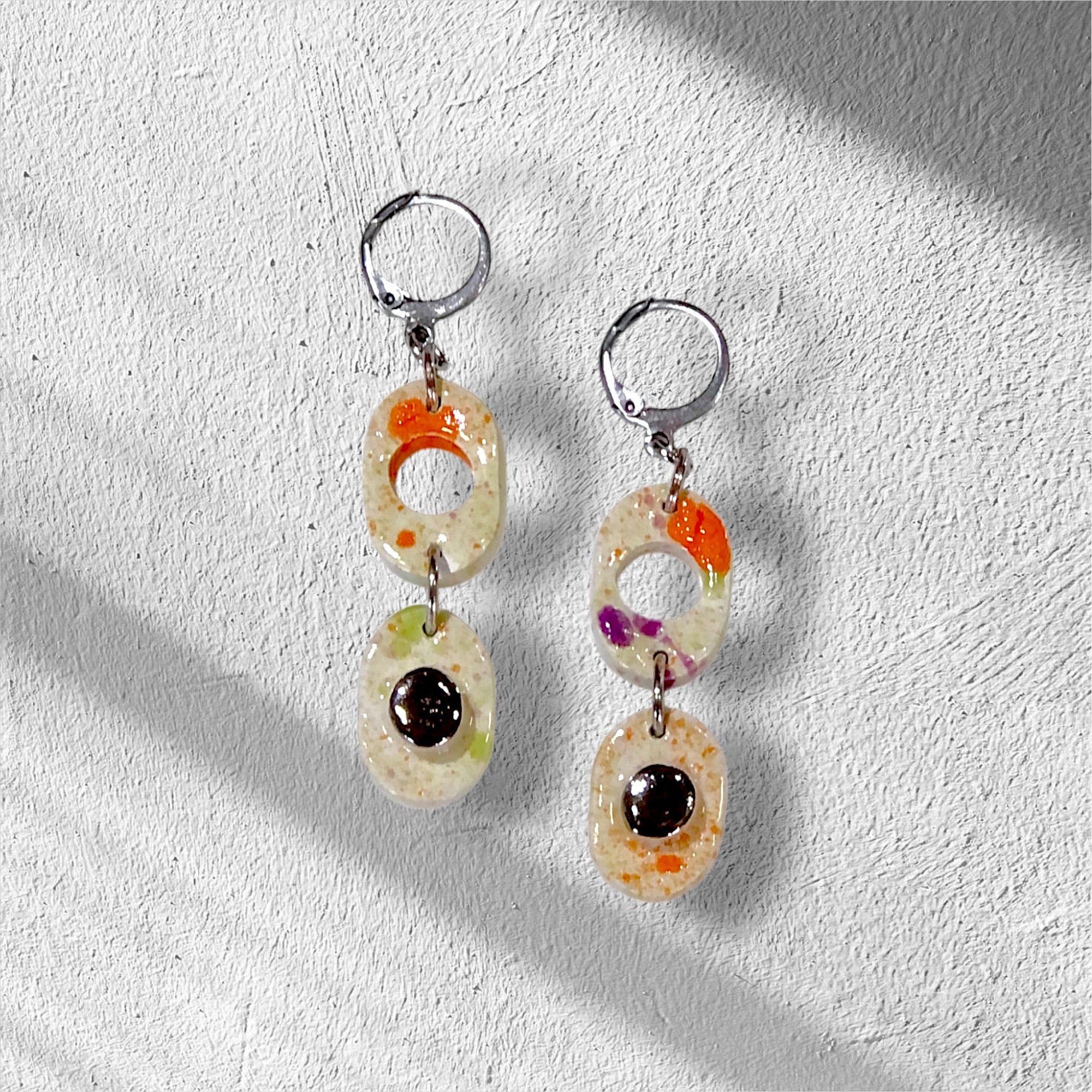 Pendientes de edición muy limitada realizados totalmente a mano en cerámica y latón en acabado plata.