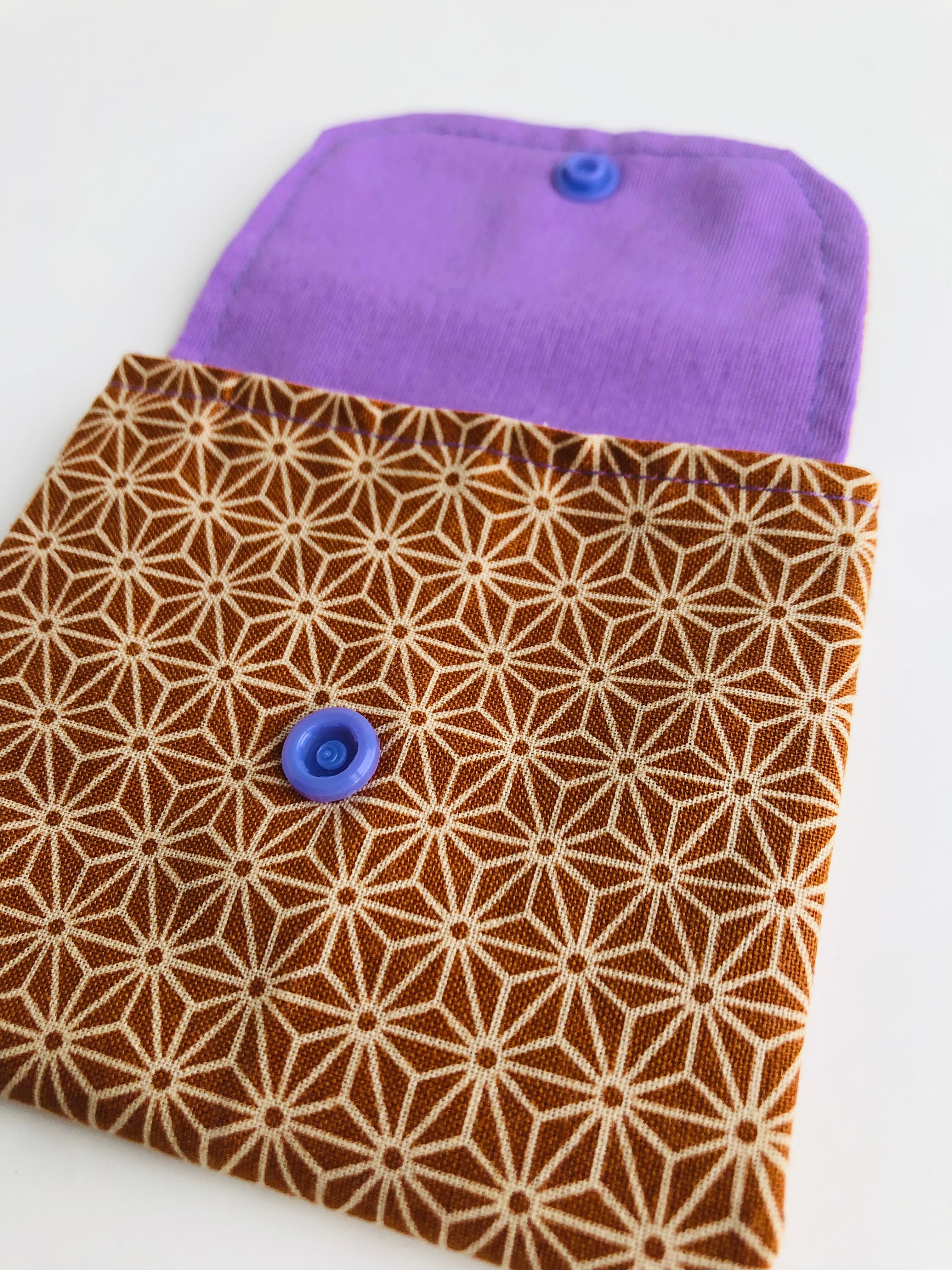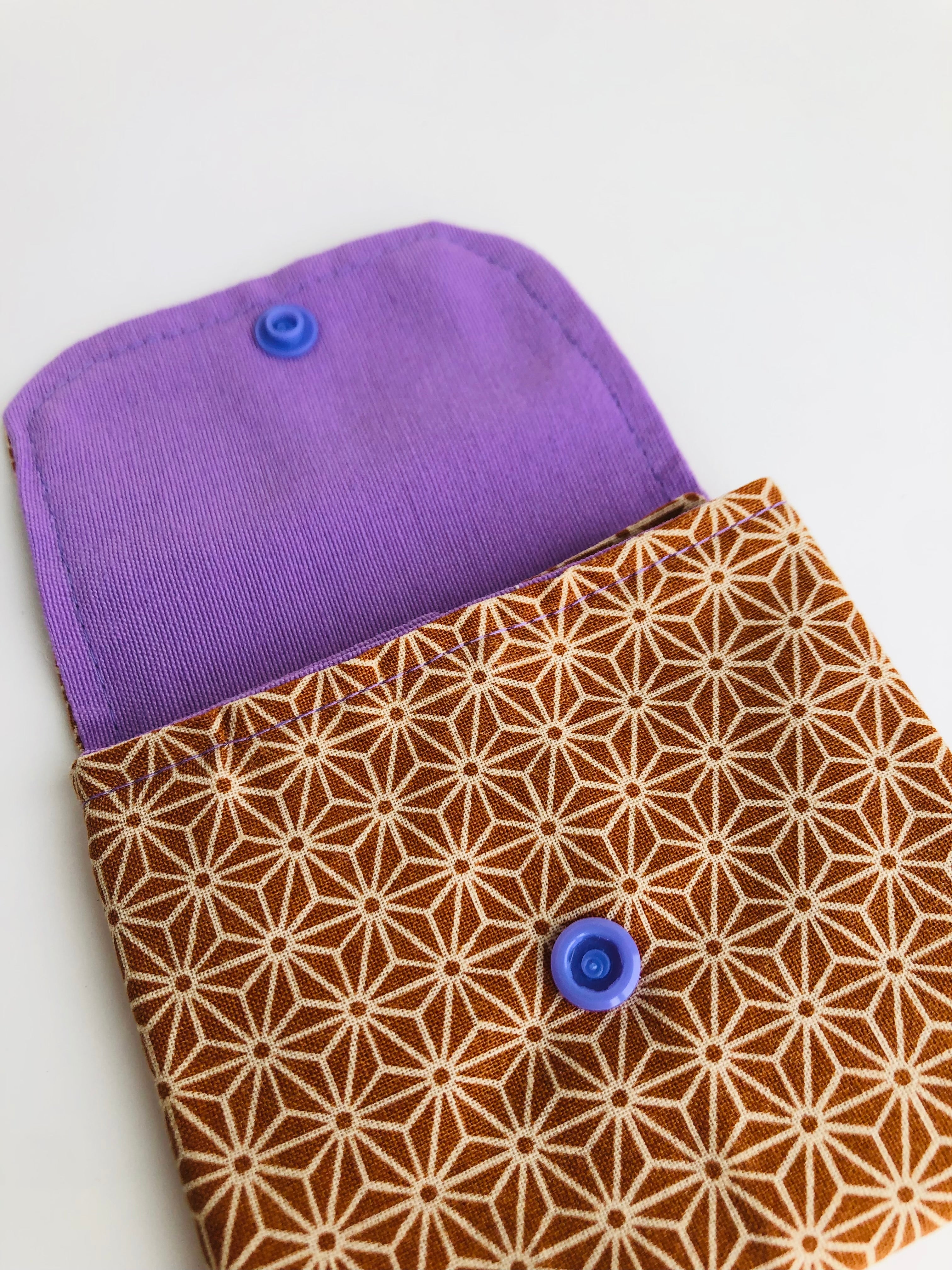 Monedero tarjetero de doble tela de tamaño ideal para cualquier bolso. Tiene unas dimensiones de 10x10 cm y se cierra con un cierre de clip.